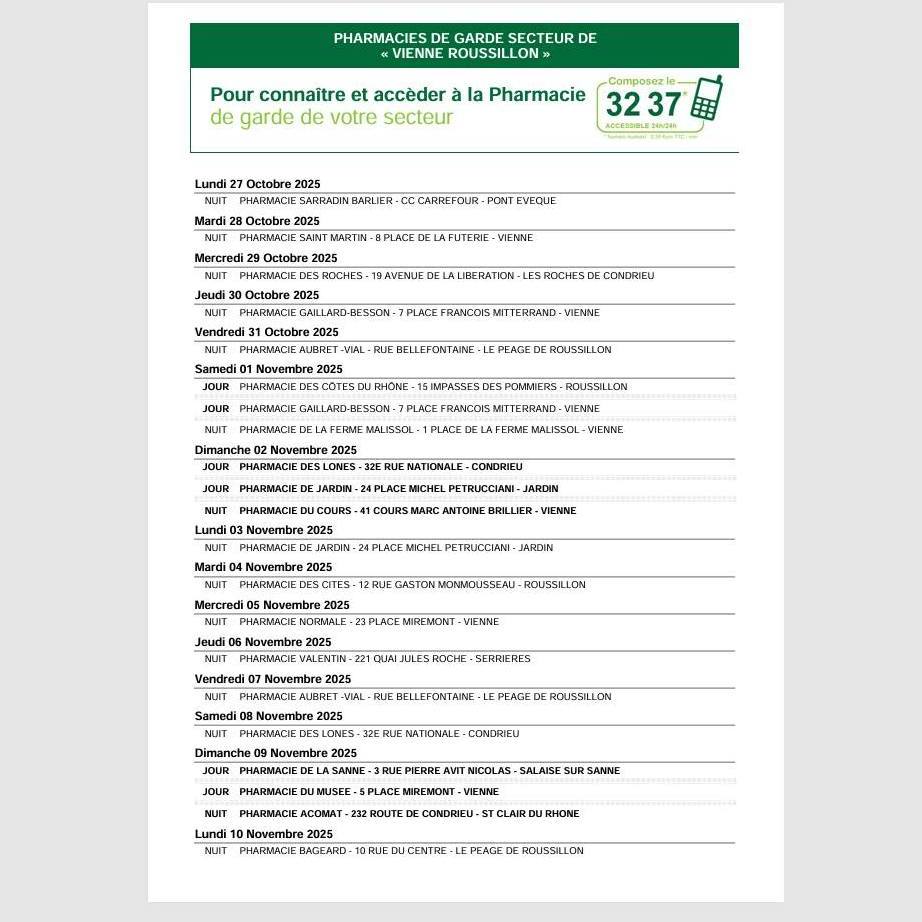 Pharmacie de garde : 3237